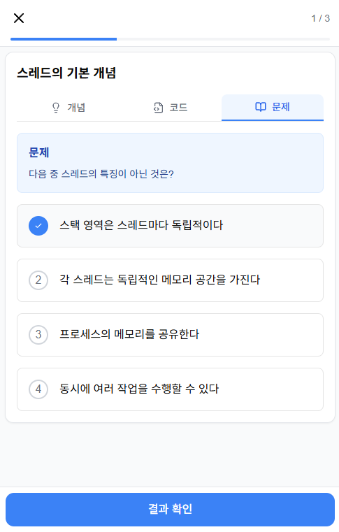 → 색상만으로도 사용자가 "지금 어떤 학습을 하고 있구나”라는 점을 직관적으로 인식하고 구분할 수 있다.