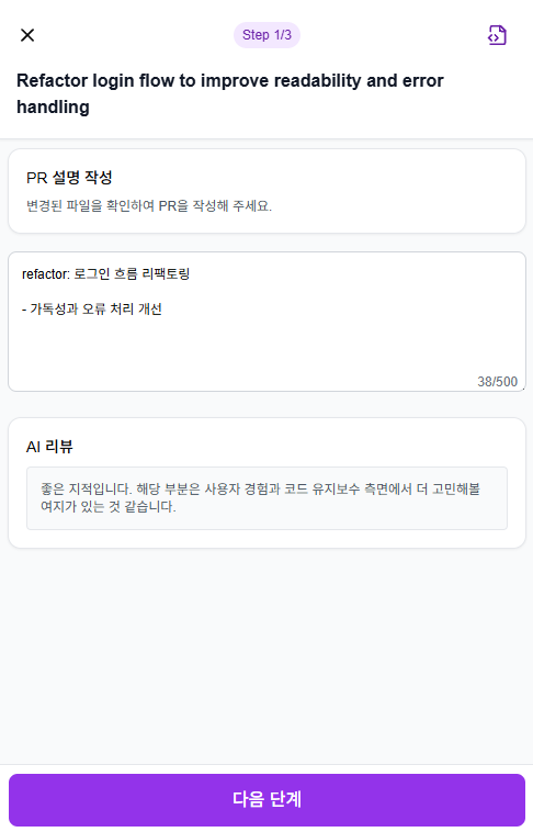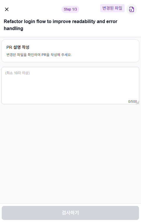 또, 모의 PR 페이지에서는 우측 상단의 변경된 파일 보기 아이콘이 직관적으로 이해되지 않을 수 있었다.